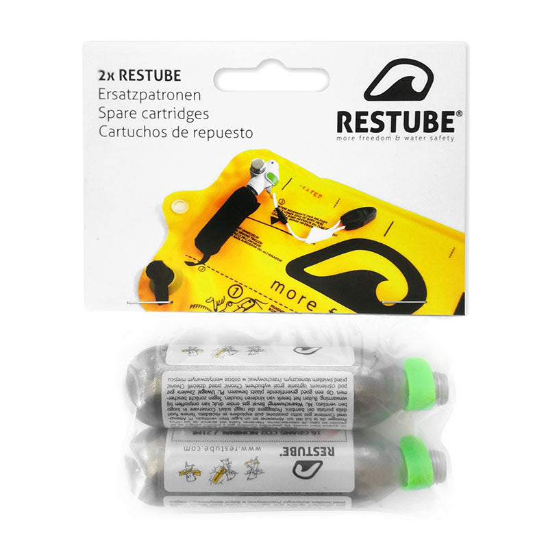 2x Official Restube cartridges. Coated in an anti-corrosive coating to ensure that they will not corrode and fail when your life depends on it.